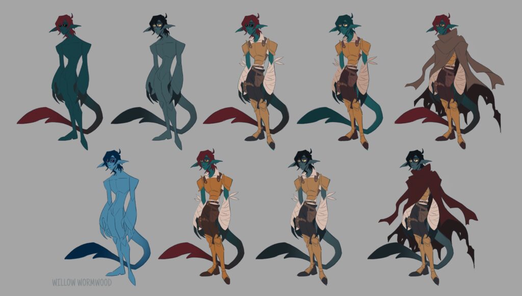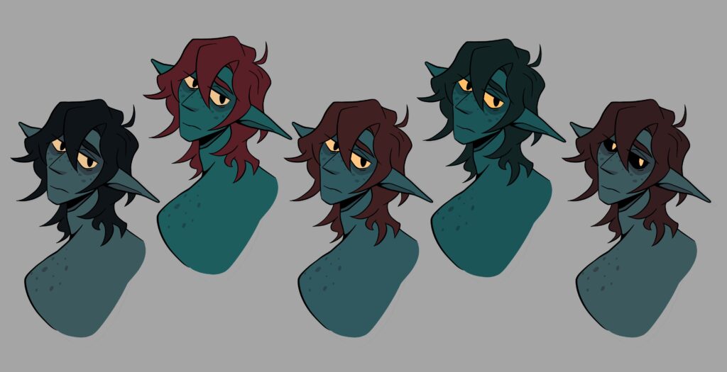 I’m not sure about the colors I used for the outfit, so I’ll play around with it some more. Another character of mine, Killian, has a lot of browns and golds in their color palette so I wanna try something different. I think my brain just tends to default to brown and gold for fantasy outfits.