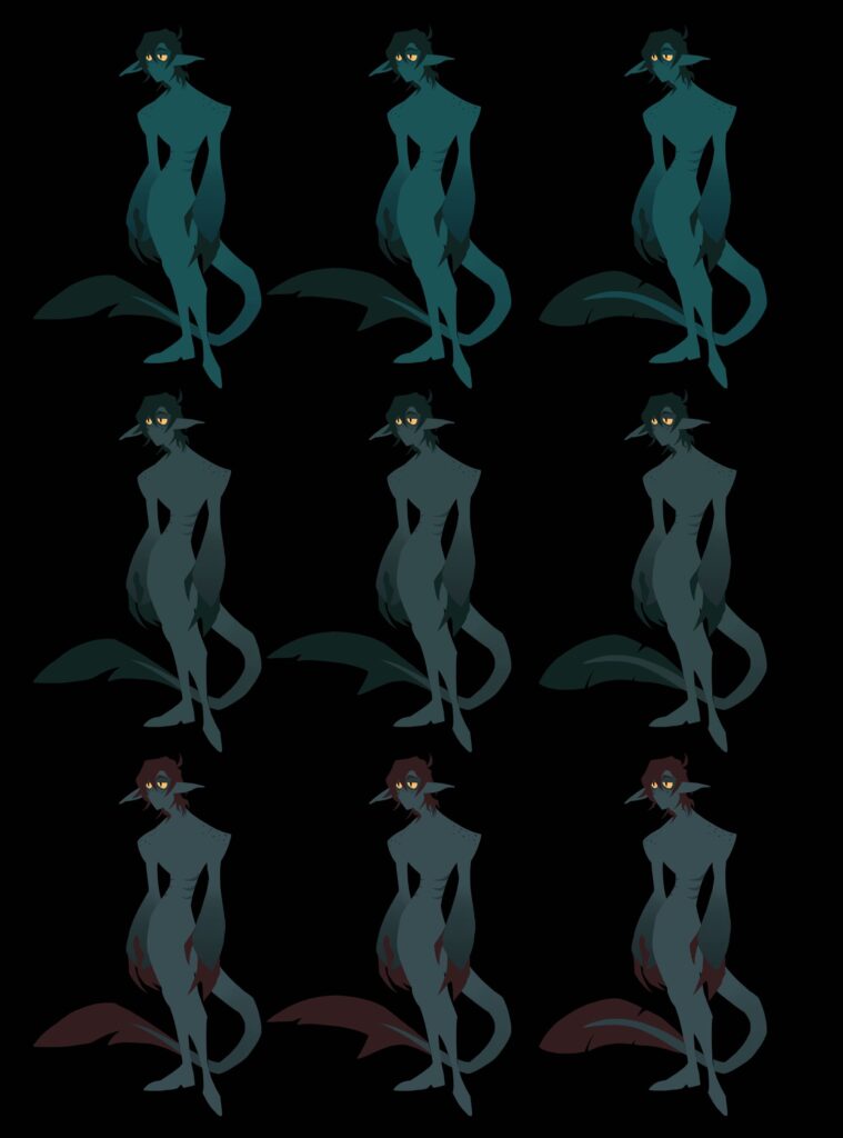 Anyway, the character! I’m still debating between the names Vesper, Jericho, or Rorik. Or Roric. Or Rurik. One of those. I think right now I’m pretty settled on Rorik though. Even though I had a pretty clear idea in my head for the general shape language, I wanted to take time to figure out the color scheme and outfit design for him.
